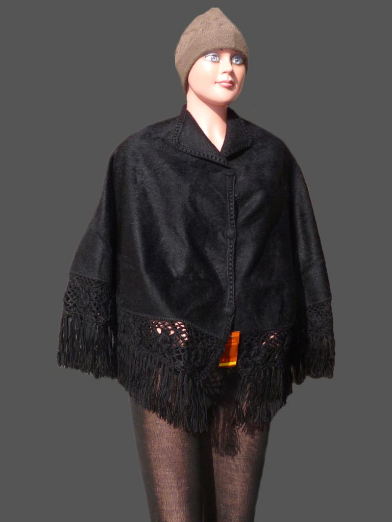 Material: 50% Alpaca 50% wool. These fine Poncho has been made in machine and hand finished are warm and soft to the touch.